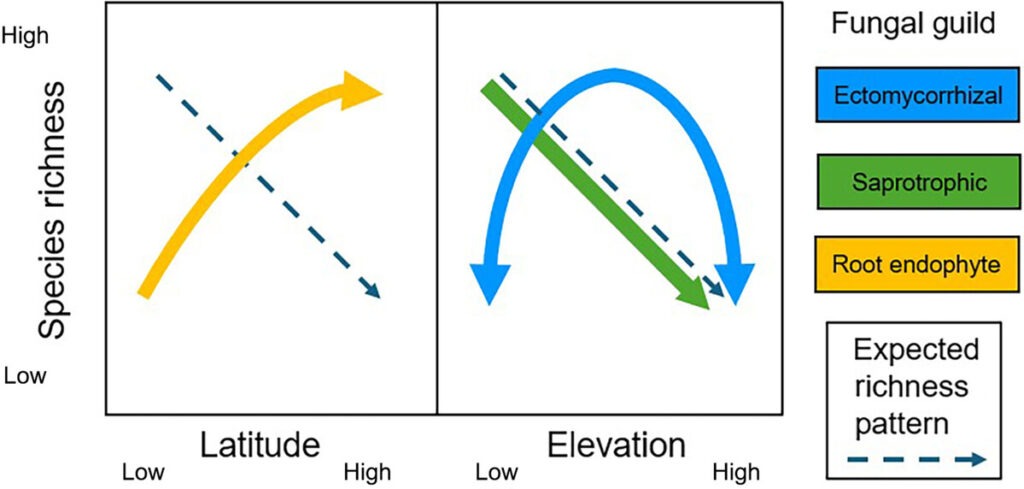 A new paper disentangling drivers behind fungal diversity gradients along altitude and latitude is out in New Phytologist! These results suggest that environmental conditions differentially shape the diversity of fungal guilds along elevational and latitudinal gradients, but this goes beyond soil and climatic factors in the case of ECM fungi. If you are interested, check out in here: https://nph.onlinelibrary.wiley.com/doi/10.1111/nph.70012.